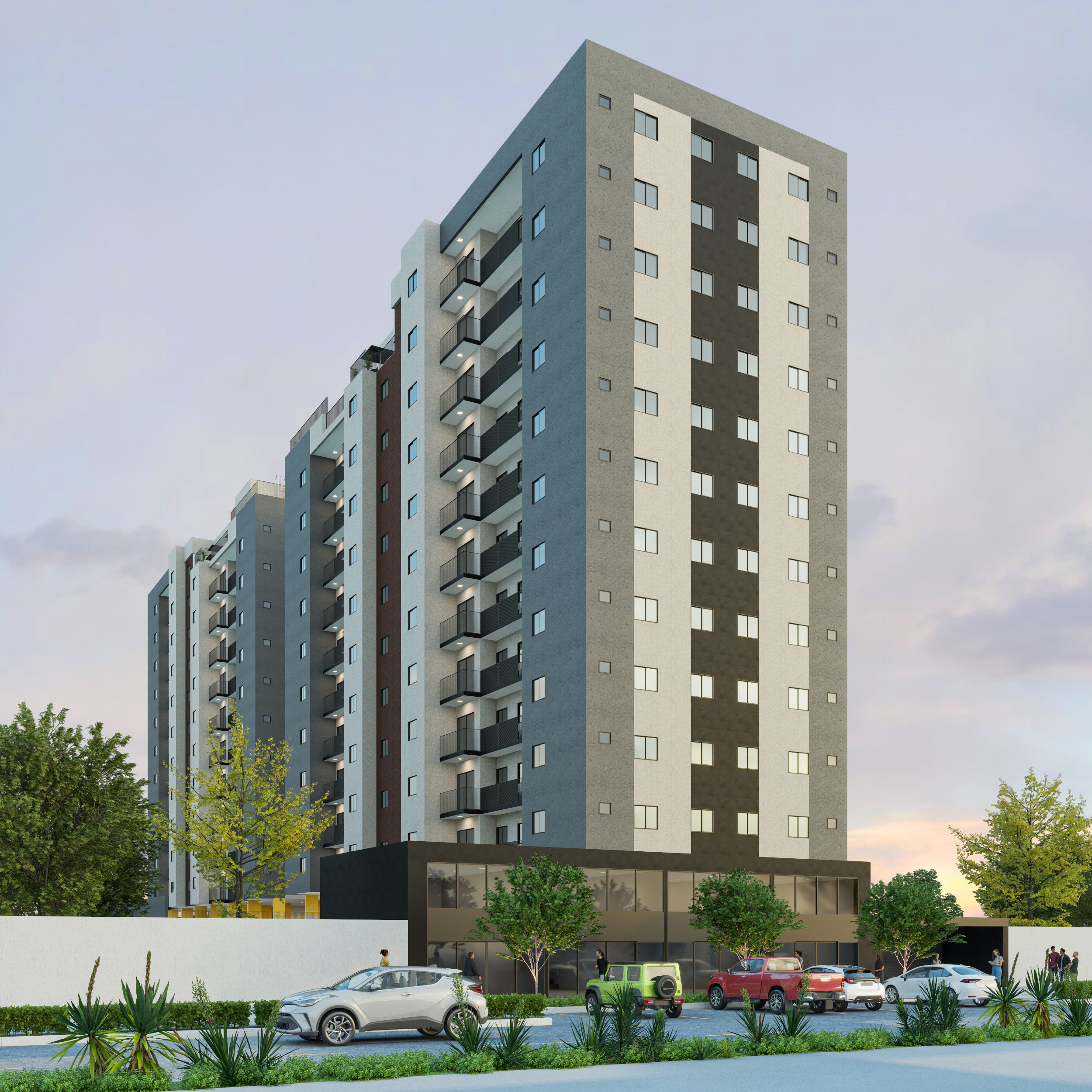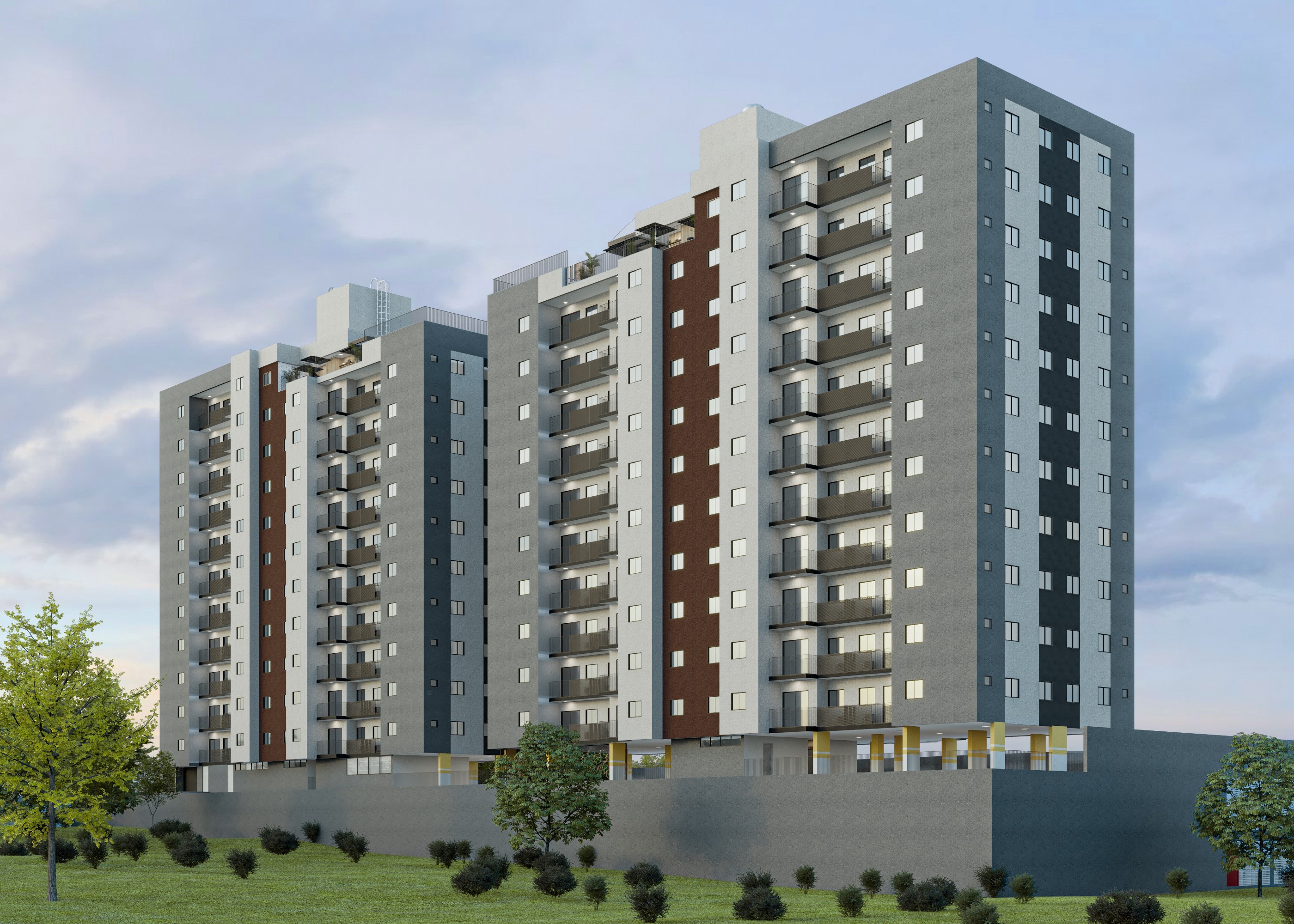 Apartamentos de 2 e 3 quartos, de 58,25 m² a 65,61 m² e 1 vaga de garagem.