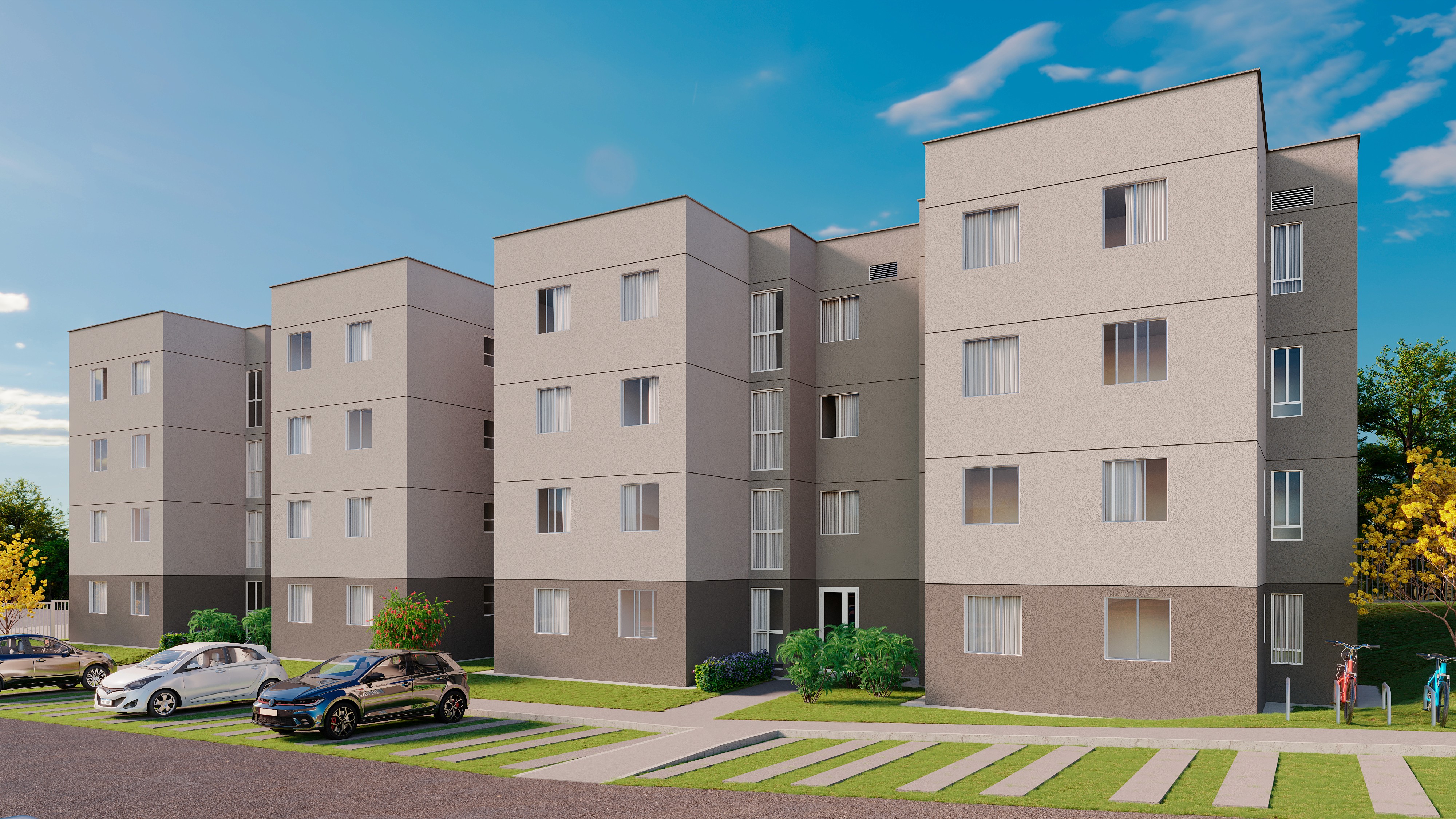 Condomínio fechado com lazer completo e segurança, localizado próximo a comércios, escolas, UPA e com acesso pela BR-020. Apartamentos de 2 quartos ou unidades adaptadas de 1 quarto (PcD).